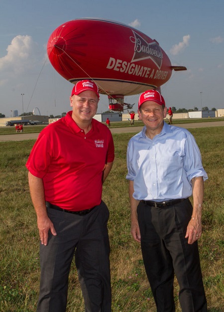 Luiz Fernando Edmond, zone president of A-B InBev North America, and St. Louis Mayor Francis Slay. Mayor Slay joined Edmond for a blimp ride over the region Thursday.