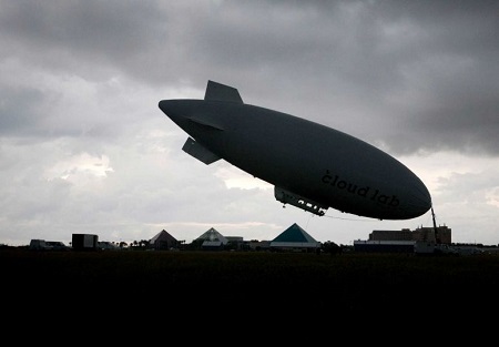 On Tuesday, Oct. 1, 2013, Cloud Lab, the world’s largest airship, stopped at Scholes International Airport in Galveston as it is flying coast-to-coast across the U.S. on a month-long expedition for the BBC Two series.